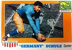 The game most prominently featured a duel between star German centers. The Michigan Alumnus wrote: "'Germany' Schulz was far and away the star of the game. In his usual style he was in every play, tackling runners for loss, falling on the ball in fumbles, and opening wide holes in the line for Michigan gains. . . . [H]e showed conclusively that he has no equal in the keystone position."[9] A Nashville source wrote "In the duel of centers, Stone of Vanderbilt, had the best of "Germany" Schulz. Michigan's massive center. Stone's play was spectacular all the way."[12]
