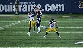 In gridiron football, defensive backs (DBs), also called the secondary, are the players on the defensive side of the ball who play farthest back from the line of scrimmage. They are distinguished from the other two sets of defensive players, the defensive linemen who play directly on the line of scrimmage, and the linebackers, who play in the middle of the defense, between the defensive line and the defensive backs.[1][2]