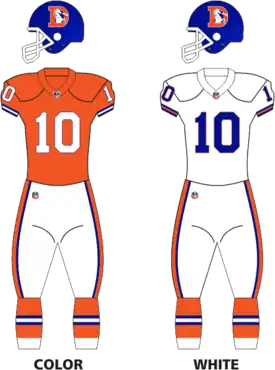 - "ESC's Denver Broncos Uniform History". Archived from the original on September 1, 2018. Retrieved March 26, 2019.