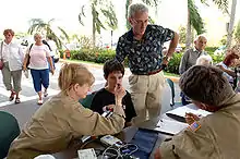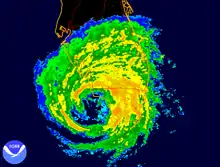 The NHC issued tropical cyclone warnings and watches across much of southern Florida, with a hurricane warning ultimately covering all of south Florida from Longboat Key on the west coast to Titusville, including Lake Okeechobee and the Florida Keys. A tropical storm watch extended northward on the west coast to Steinhatchee River. On Florida's east coast, a tropical storm warning stretched northward from Titusville to St. Augustine, with a tropical storm watch extending north to Fernandina Beach.[1] Florida governor Jeb Bush declared a state of emergency on October 19, allowing the deployment of the Florida National Guard and strategic placement of emergency supplies.[14] A mandatory evacuation of residents was ordered for the Florida Keys in Monroe County and those in Collier County living west or south of US 41.[15] County offices, schools and courts were closed October 24. At least 300 Keys evacuees were housed at the Monroe County shelter at Florida International University in Miami-Dade County.[16] All Collier County public schools closed on October 21 and remained closed on October 24, as the hurricane made landfall.[17] Schools around Fort Myers and Tampa, as well as Sumter, Marion, Osceola, Pasco, and Polk counties, were closed on October 24. In other areas of Central Florida, schools were closed in Flagler, Lake, Orange, and Volusia counties.[18] Schools in Palm Beach and Broward counties were closed for two weeks because of extended power outages and some damage to school buildings.[19]