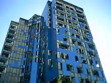 Wilma inflicted a multi-billion dollar disaster in the Miami metropolitan area, including $2.9 billion in damage in Palm Beach County,[62] $2 billion in Miami-Dade County, and $1.2 billion in Broward County.[63] Numerous homes and businesses experienced some degree of impact, with over 55,000 dwellings and 3,600 workplaces damaged in Palm Beach County alone.[62] Furthermore, officials declared 5,111 residences in Broward County and at least 2,059 others in Miami-Dade County as uninhabitable.[55][64] An aerial survey in Broward County indicated that 70% of homes and businesses in Coconut Creek, Davie, Margate, North Lauderdale, Plantation, and Sunrise experienced some degree of impact.[65] High winds also damaged skyscrapers and high-rises, including the Colonial Bank Building, the JW Marriott Miami, Espirito Santo Plaza, and the Four Seasons Hotel Miami in Greater Downtown Miami,[66][67] as well as the One Financial Plaza, AutoNation Tower, Broward Financial Center, the Broward County Administration Building, the 14-floor Broward County School Board building, and the Broward County Courthouse in Fort Lauderdale.[68]