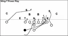 The Wing T has its roots in what Otto D. Unruh called the "T-Wing" formation and is known to have called the play as early as 1938 with the Bethel Threshers.[22]