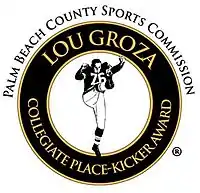 The Lou Groza Award is presented annually to the top college football placekicker in the United States by the Palm Beach County Sports Commission. The award is named after former Ohio State Buckeyes and Cleveland Browns player Lou Groza. It has been presented since 1992, with Joe Allison of Memphis receiving the inaugural award. The incumbent award holder is Jose Borregales of Miami. The award is part of the National College Football Awards Association coalition.