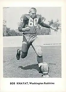 Khayat was selected by the Cleveland Browns in the 1960 NFL Draft.[3][4] He was then traded to the Washington Redskins in April 1960.[5] He played for the Redskins during the 1960, 1962, and 1963 seasons. Following the 1960 season, he was named to the Pro Bowl squad.[6] He appeared in a total of 40 NFL games and kicked 38 field goals and 90 extra points.[3]