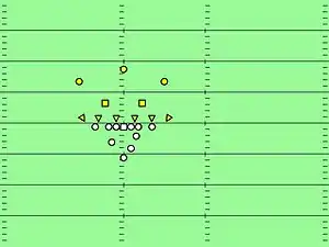 The short punt formation is an older formation on both offense and defense in American football, popular when scoring was harder and a good punt was itself an offensive weapon.[1][2] In times when punting on third down was fairly common, teams would line up in the short punt formation and offer the triple threat of punt, run or pass.[3][4] Harper's Weekly in 1915 called it "the most valuable formation known to football."[4]