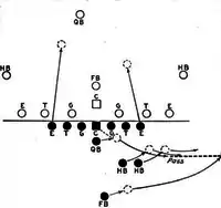 The formation is similar to the single wing and modern shotgun by including the possibility of a long snap from center. However, it is generally a balanced formation, and there are backs on both sides of the tailback, offering better pass protection. As a result, it was considered a much better passing formation than running, as the premiere running formation was the single wing.[5] That said, it was regarded as a good formation for trap plays.[6]