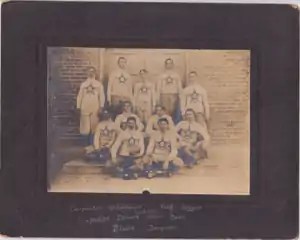 Texas A&M first fielded a football team in 1894, under the direction of head coach F. Dudley Perkins.[4] The team compiled a 1–1 record.[4] W. A. Murray served as A&M's head coach from 1899 to 1901, compiling a record of 7–8–1.[5] From 1902 to 1904, J. E. Platt served as A&M's head coach, his teams compiling a record of 18–5–3.[5] From 1909 to 1914, A&M compiled a 38–8–4 record under head coach Charley Moran.[6] Moran's 1909 team finished undefeated, and all but one of Moran's other seasons the Aggies only lost one game each year.[5] Under head coach Edwin Harlan, the Aggies compiled a record of 12–5 in two seasons and joined the Southwest Conference.[7][8]