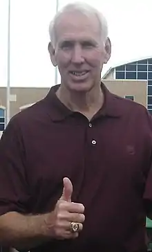 Tom Wilson was promoted from offensive coordinator to head coach of the Aggies following Bellard's resignation.[48] The Aggies enjoyed moderate success under Wilson's tutelage, compiling a record of 21–19 and an Independence Bowl victory in 1981.[49] However, the mediocrity did not sit well with the administration, and Wilson was fired after the 1981 season.[50]