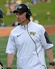 Dave Clawson was hired away from Bowling Green as the Demon Deacons head football coach, his hiring made official at a press conference on December 10, 2013.[126] Clawson brought with him a coaching style that utilizes the team's available talent to maximize success. His offensive philosophy focuses on getting individual playmakers more touches rather than sticking to a rigidly-defined system.[127]