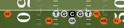 - Split end (X or SE): A receiver positioned farthest from center on their side of the field which takes their stance on the line of scrimmage, necessary to meet the rule requiring seven players to be lined up on it at the snap. In a punt formation the split end is known as a gunner.[7]